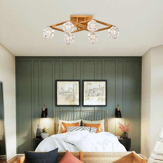 6 Light Crystal Ceiling Light For Dining Room, Modern Ceiling Lamp With Light Fixture For Entryway, Lobby, Kitchen, Bedroom, Living Room, Conference Room, (6*G9 Bulbs Included)