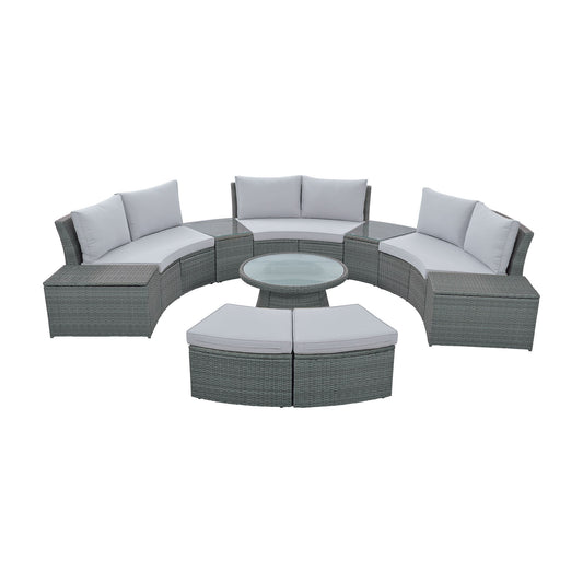 10 Piece Outdoor Sectional Half Round Patio Rattan Sofa Set
