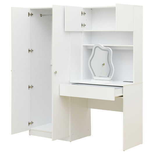 2 Door Storage Vanity Wardrobe For Bedroom With Makeup Mirror And Drawers - White