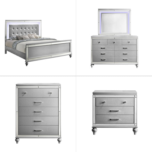 Almera - 5 Piece Bedroom Set With LED Lighting And Glitter Details