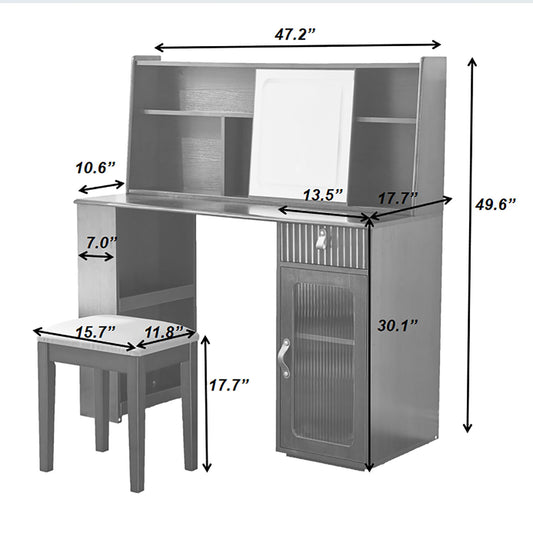 Luxury Vanity Desk With Round Mirror Height Adjustable Dressing Table Set Engineered Wood - Silver