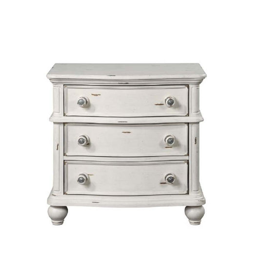 Jaqueline - Nightstand - Light Gray Linen & Antique White Finish
