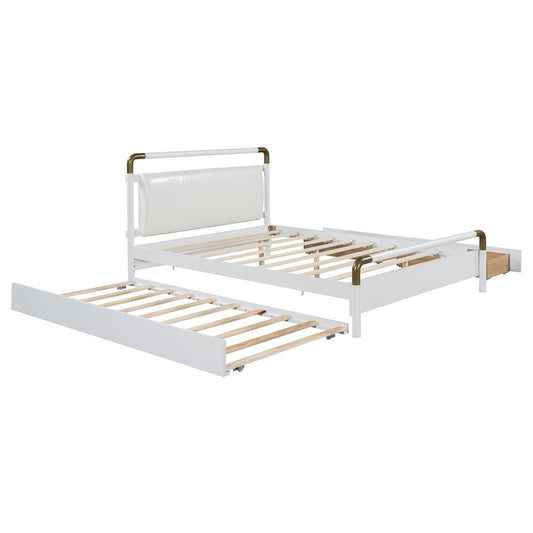 Trundle Pull Out Drawers Storage Upholstered Bed Modern Design No Box Spring Required