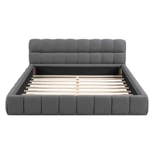Upholstered Platform Bed With Thick, Grounded Bed With Solid Frame