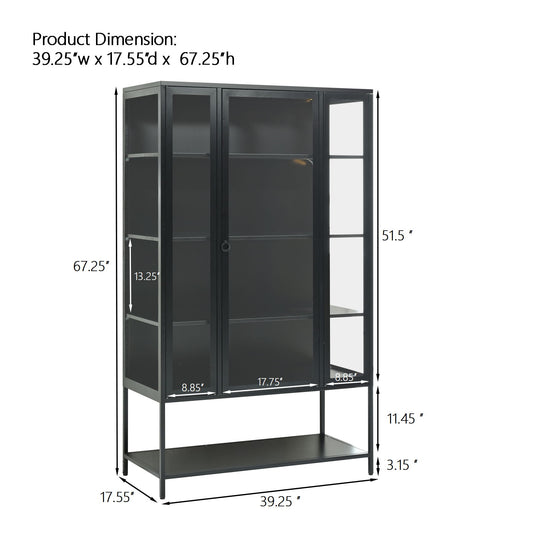 Modern Steel Display Cabinet With LED Lights And Glass Door For Home Or Workspace - Black