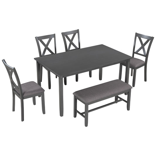 Kitchen Dining Table Set Wooden Rectangular Dining Table, 4 Chairs And Bench Family Furniture