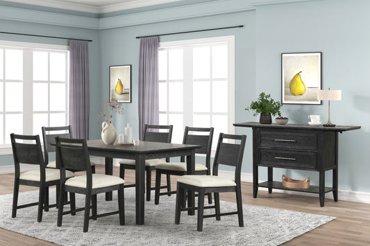 7 Piece Dining Set With Upholstered Chairs And Wood Table