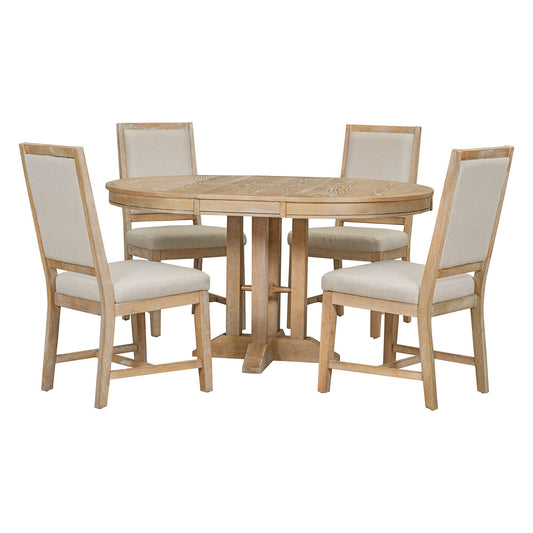 5 Piece Dining Set With Extendable Round Table And Upholstered Chairs