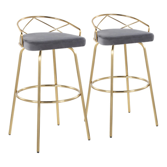 Charlotte - Glam Glam / Art Deco Fixed Height Barstool With Swivel With Round Footrest (Set of 2)