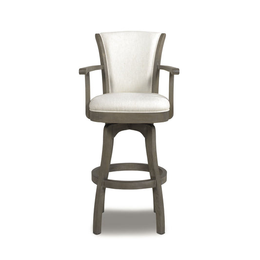 Contemporary Design Swivel Counter Stool With Low Back Support Polyester And Solid Wood - Cream