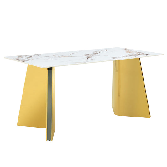 Marble Patterned Slab Dining Table With Steel Butterfly Legs