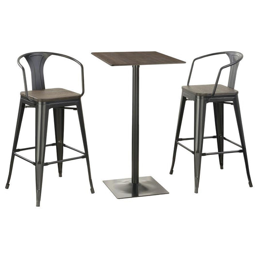 Cavalier - 3 Piece Square Bar Table Set - Dark Elm and Black