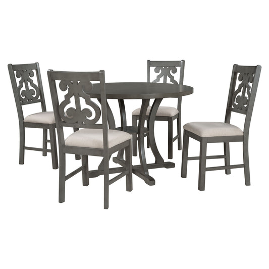 5 Piece Round Dining Table And Chair Set With Unique Legs And Hollow Chair Back