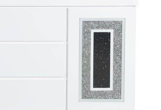 Elizaveta - Server - Gray Velvet, Faux Crystal Diamonds &White High Gloss Finish