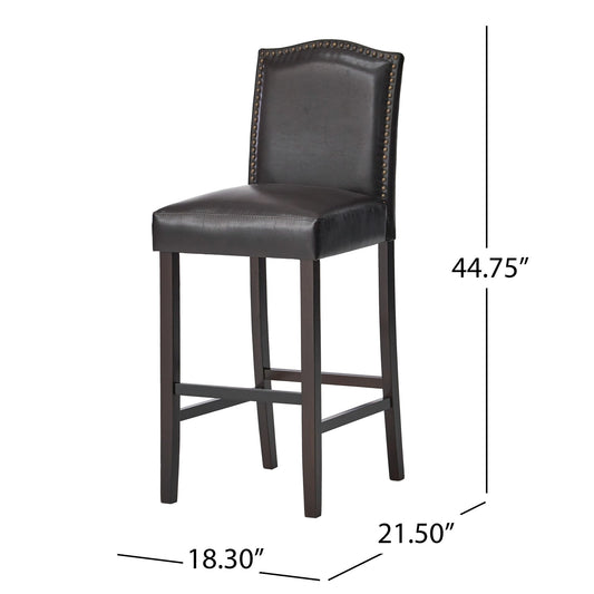 Bar Stools (Set of 2), Upholstered Barstools Armless, Rubber Wood Leg - Brown