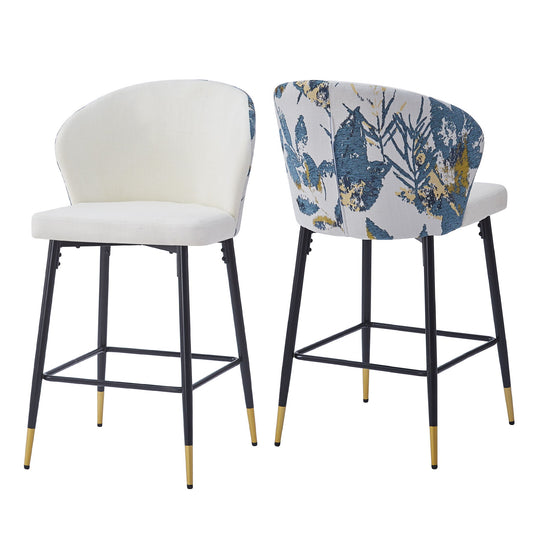 Counter Height Bar Stools (Set of 2), Jacquard Upholstered, Metal Footrest