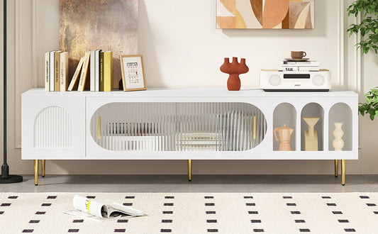 Modern TV Stand For TVs Up To 75" With Fluted Glass Doors