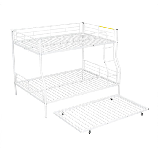 Modern Twin Over Full Metal Bunk Bed With Trundle And Dual Side Ladder And Metal Design - Black / Brown