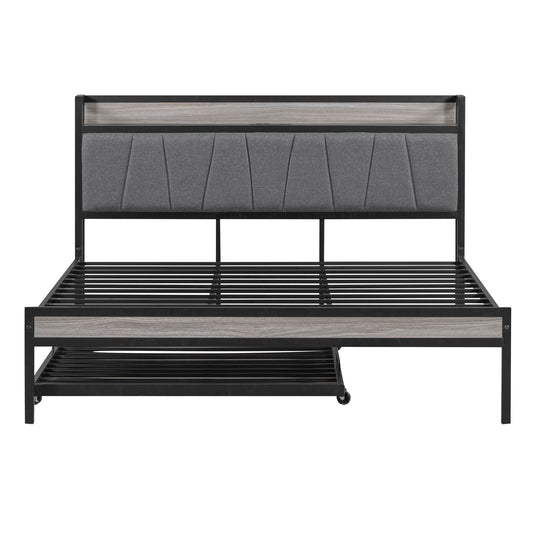 Platform Bed Frame With Trundle, USB Ports And Slat Support, No Box Spring Needed