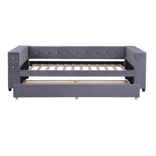 Upholstered Bed With Storage And Twin Trundle, USB Charging Ports