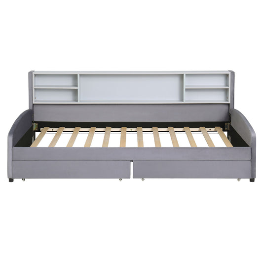 Upholstered Daybed With Cloud-Shaped Backrest, Trundle & 2 Drawers And USB Ports