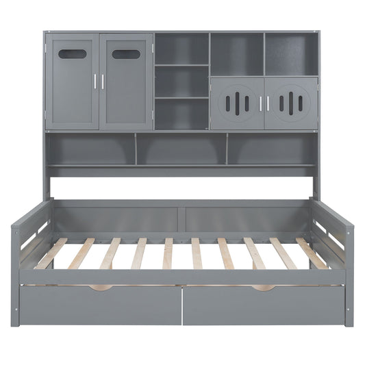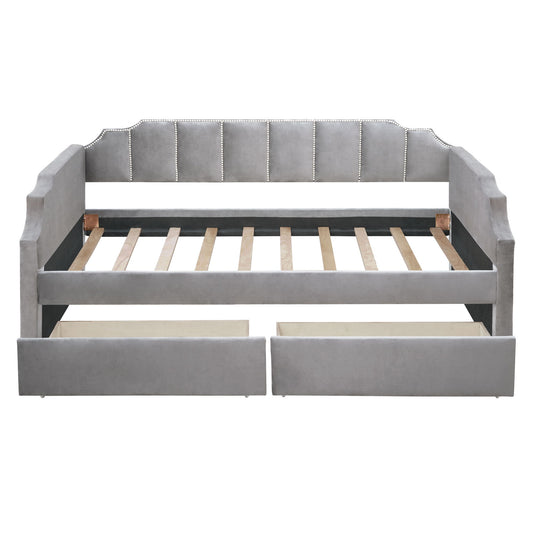 Daybed With Fence Guardrails And 2 Drawers, Split Into Independent Floor Bed & Daybed