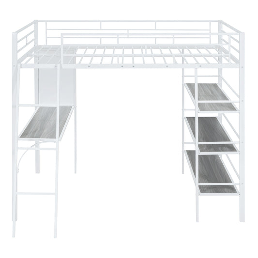 Bed With 3 Layers Of Shelves And Desk, Stylish Frame Bed