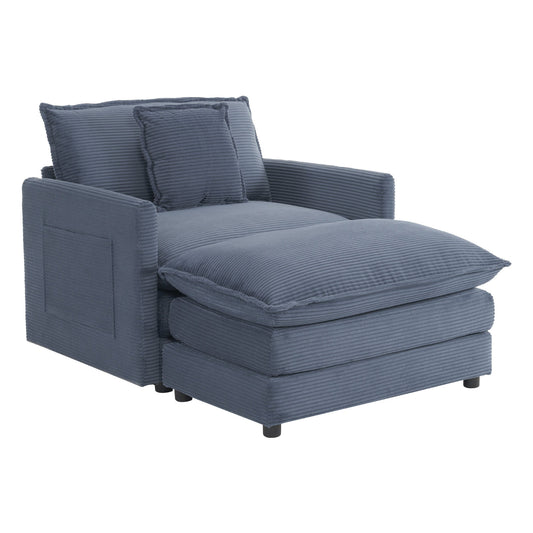 Oversized Chair With Movable Ottoman, Soft Upholstered Lounge Chair