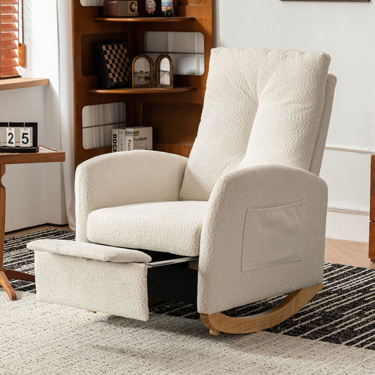 Accent Rocking Chair & Footrest High Back Rubber Wood Rocking Legs Bedroom Living Space - Beige