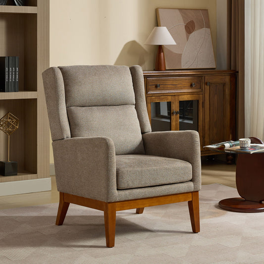 Modern Wing Back Lounge Chair Stylish Design, Soft Fabric, Solid Wood Legs, Durable Frame