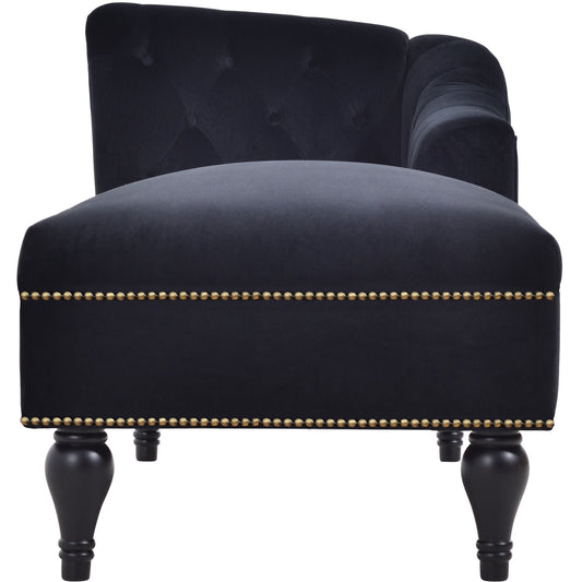 Velvet Chaise Lounge, Button Tufted Right Arm Facing Lounge Chair With Nailhead Trim For Living Room - Black
