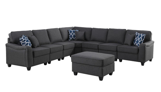 Cassia - 7 Seat Reversible Modular Sectional Sofa With Ottoman