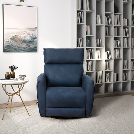 Carson - Swivel Glider Suede Recliner Chair - Midnight Blue