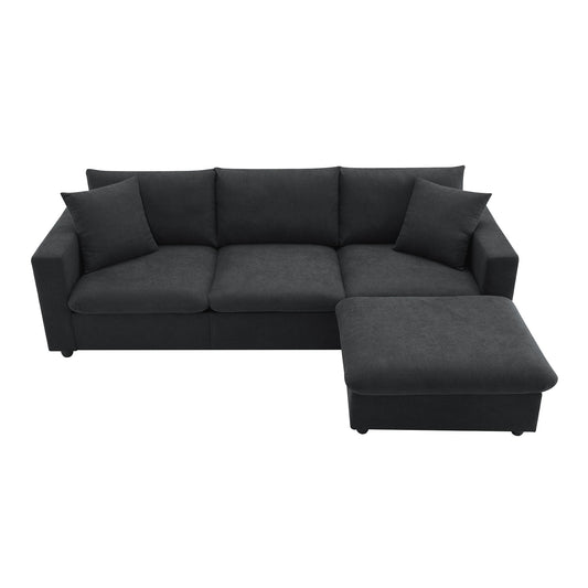 Modern Sectional Sofa, L-Shaped Couch Set With 2 Free Pillows, 4-Seat Polyester Fabric Couch Set With Convertible Ottoman For Living Room, Apartment, Office