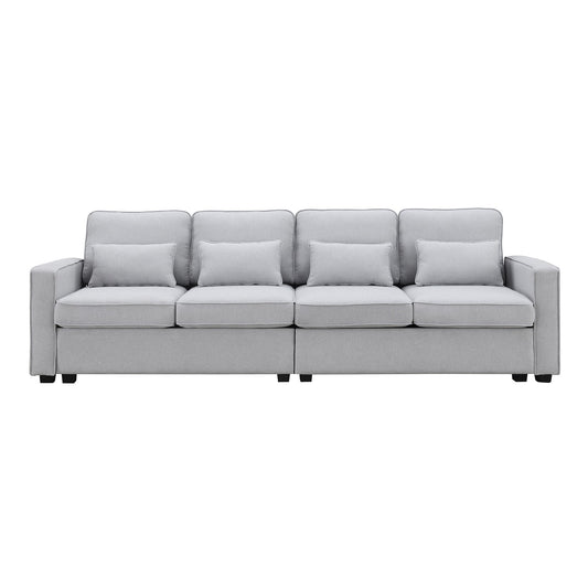 4 Seater Modern Linen Sofa With Armrest Pockets And 4 Pillows, Minimalist Style Couch For Living Room