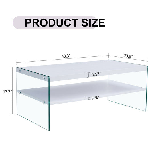 Modern Double Rectangular Coffee Table With Storage Function And Transparent Tempered Glass - White