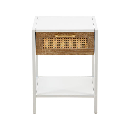 15.74" Rattan End Table With Drawer, Modern Nightstand, Metal Legs, Side Table For Living Room, Bedroom