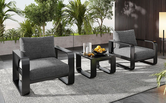 3 Piece Aluminum Frame Patio Furniture With 6.7" Thick Cushion And Coffee Table, All Weather Use Olefin Fabric Outdoor Chair - Gray / Black