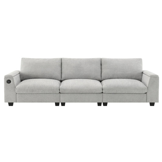 William - Modern Fabric Sleeper Sofa With 2 USB Charging Ports And 4 Accent Pillows - Gray