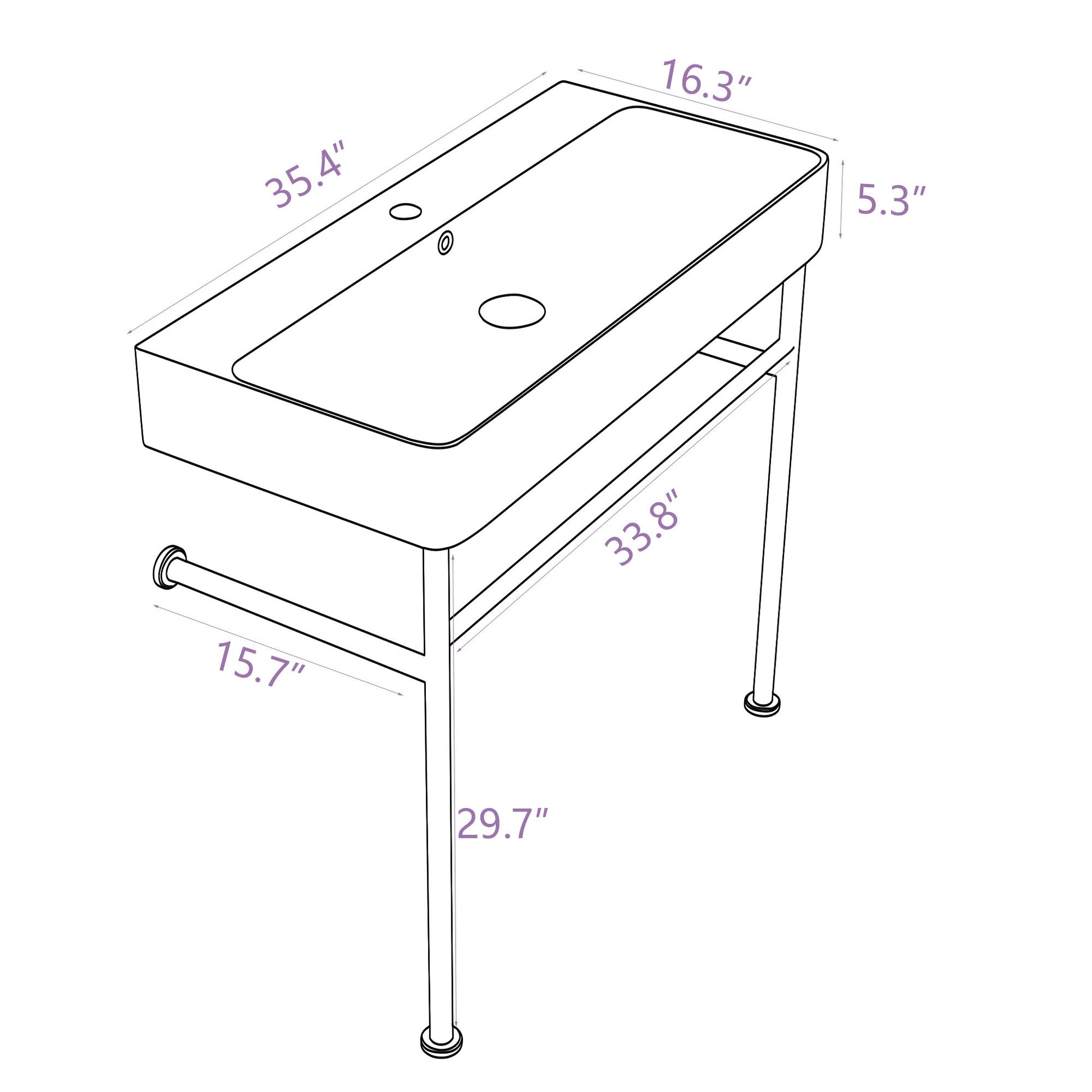 35.4" Ceramic Console Bathroom Sink With Overflow Legs, Modern Vanity Basin - White