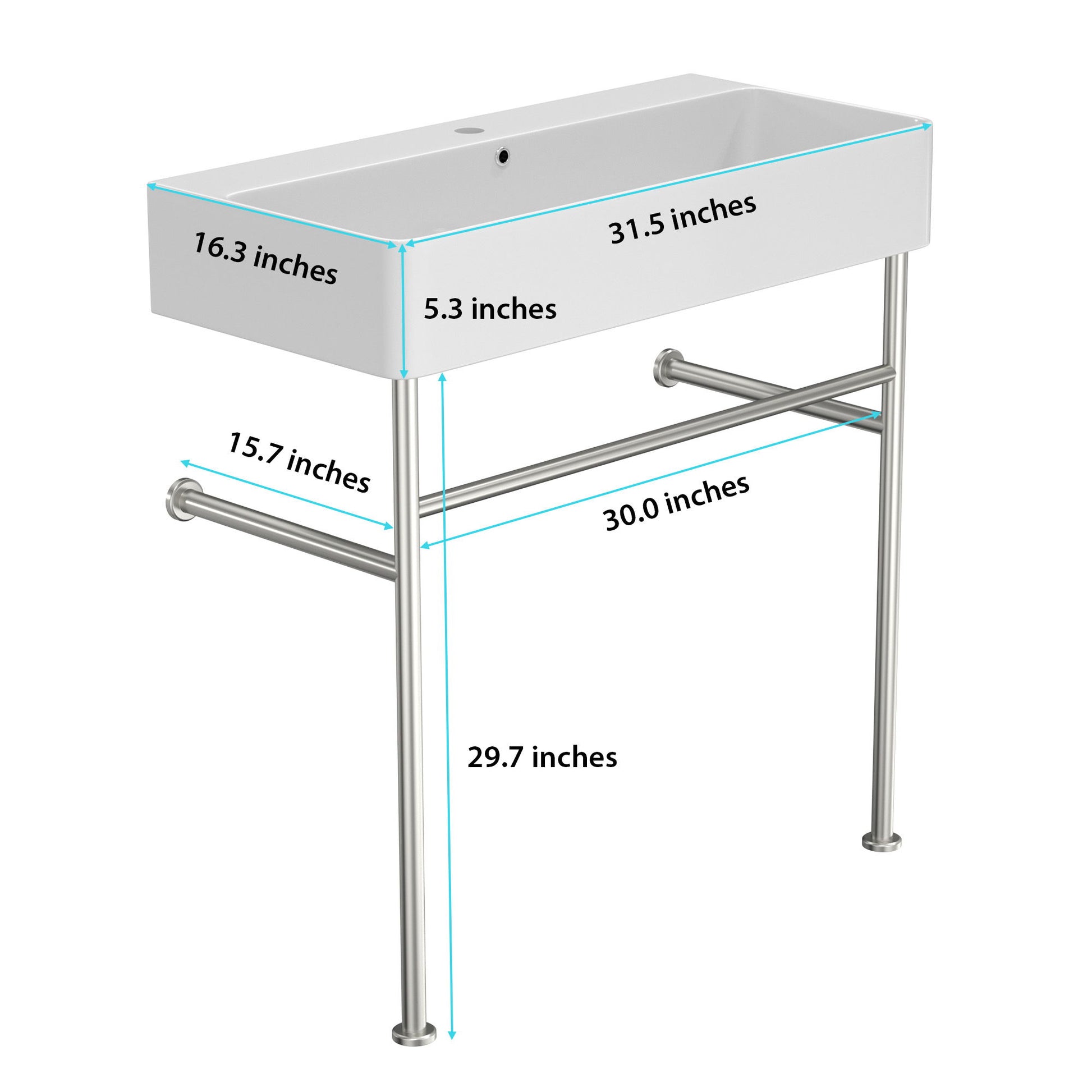 Modern 30" Bathroom Console Sink With Overflow Ceramic Basin And Stainless Steel Legs - White