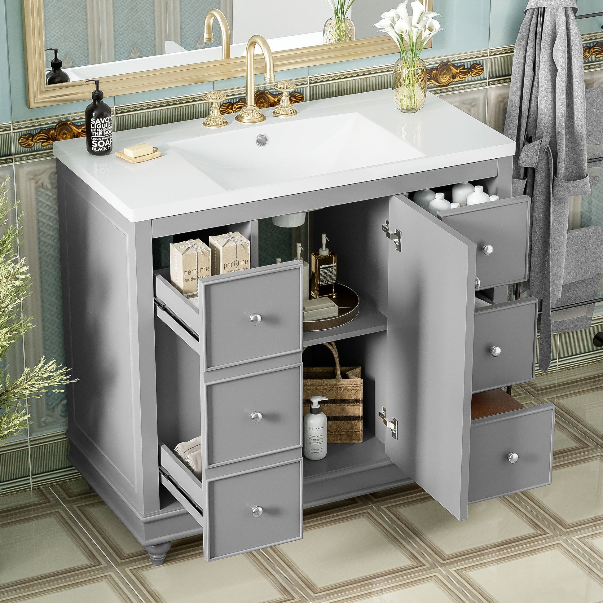 Contemporary Bathroom Vanity Cabinet, 4 Drawers & 1 Cabinet Door, Multipurpose Storage, Resin Integrated Sink, Adjustable Shelves, Solid Wood Frame With MDF - Gray