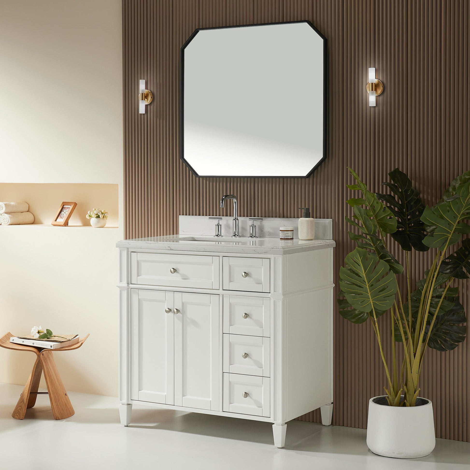 Freestanding Single Sink Bathroom Vanity With Solid Wood Construction And Engineered Marble Top - White